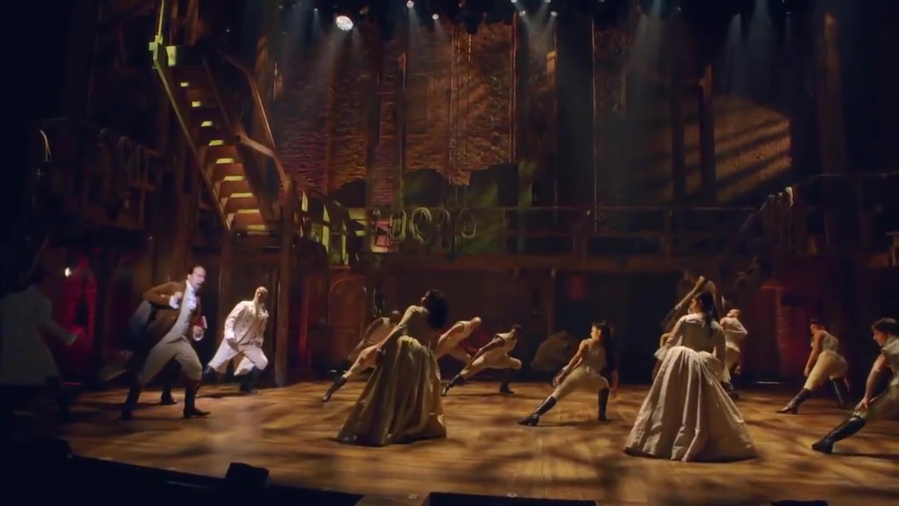 The music swells until Hamilton’s last “just you wait!” At this point, the entire company leans away from him. By leaning away as Hamilton walks determinedly forward, the company is anticipating the promise, almost threat in Hamilton’s words: “Just you wait until you see what I’m going to do!” This choreography lends visual support to what we’re learning about Hamilton—he’s a force of nature, and he’s going to try to bend everyone around him to his will.